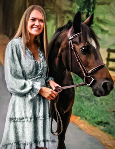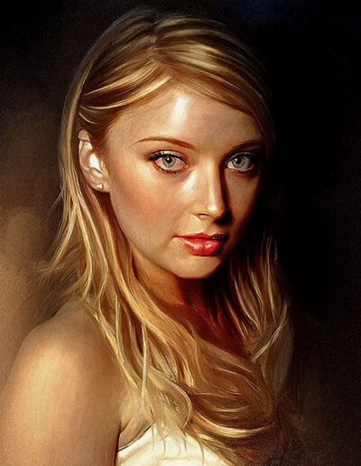 Portraits are hand painted on a large iPad and then printed on to canvas, looking exactly like an oil portrait once hanging on the wall.